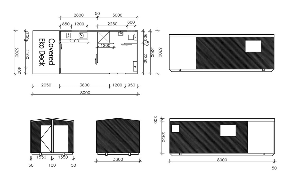 Please note that various off-grid customisations are available, such as incinerator or compost toilets, solar panels and more..